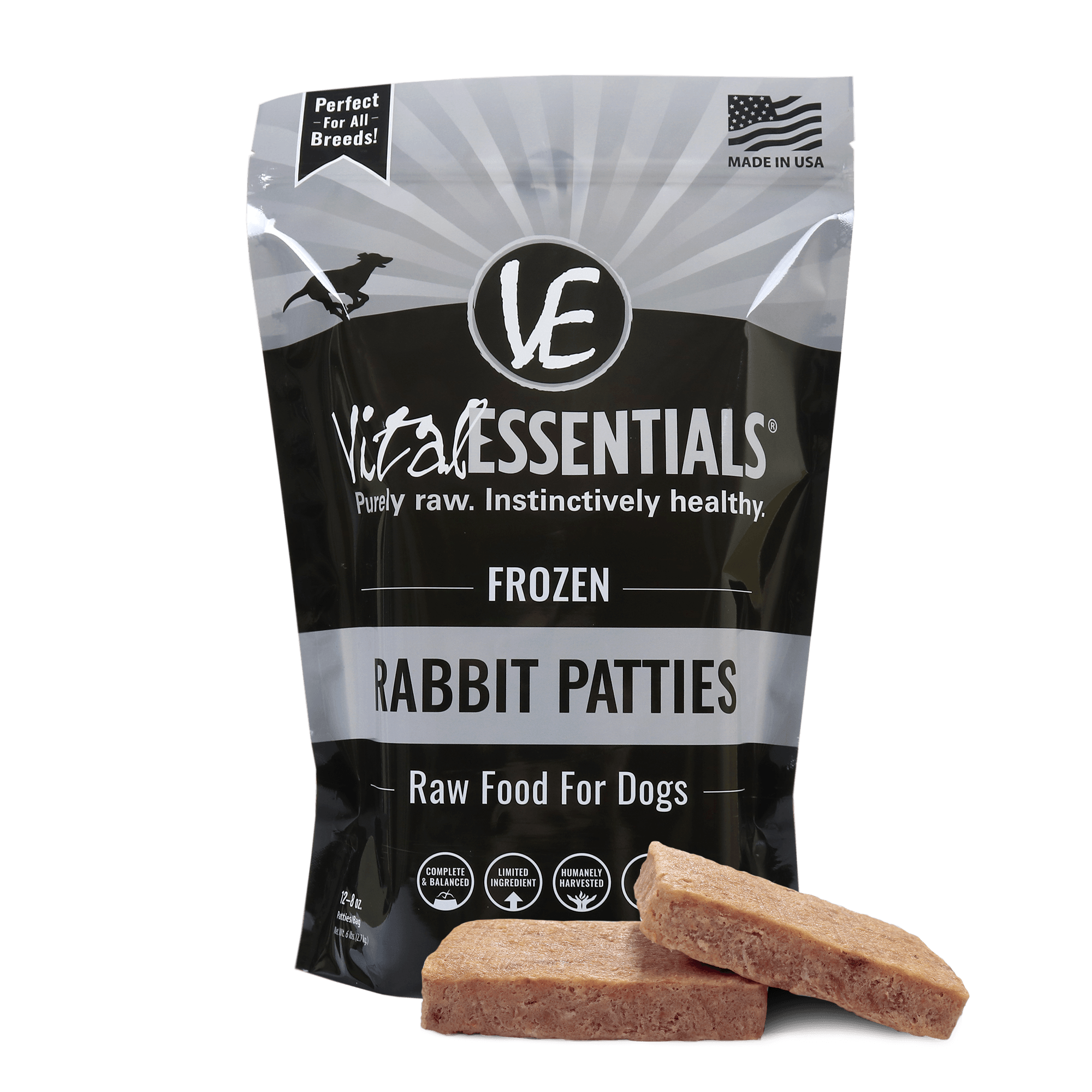 Vital Essentials® Frozen Rabbit Patties are made from pure, raw, rabbit. No added flavorings! -