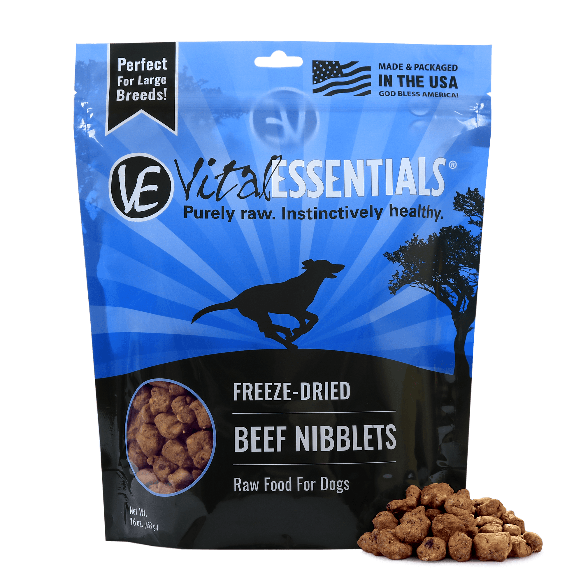 Our easy-to-serve freeze-dried dog food nibblets have a natural taste of real, raw meat your dog will love. -